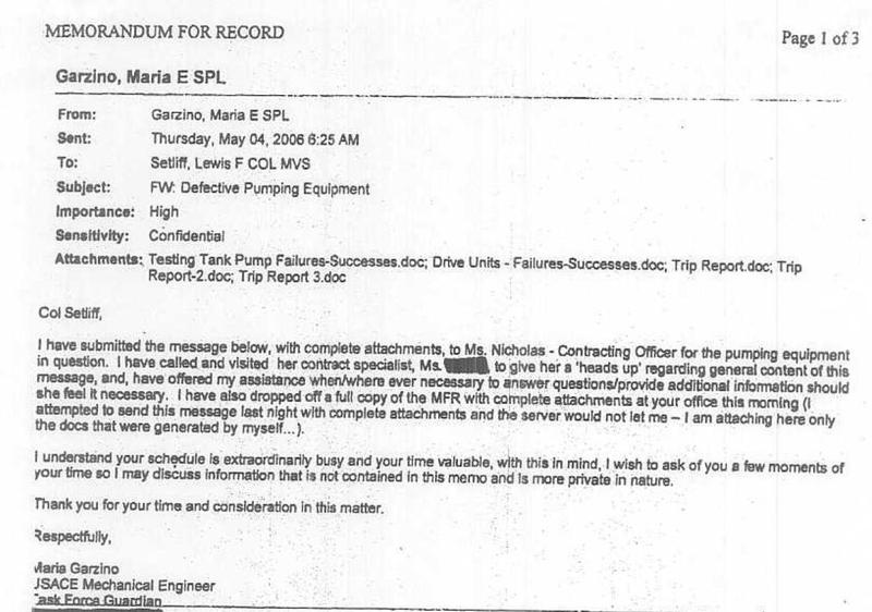 UPDATE: Copy of email from the engineer who wrote memo on pump testing is after the jump. It includes who she informed of the memo. (added: Email comes from Fix the Pumps blog-link to memo and email within post here)